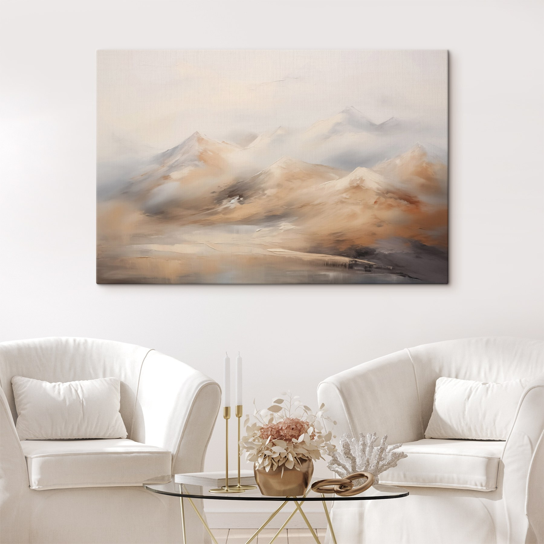 Przekształć dowolne pomieszczenie w spokojny azyl dzięki temu oszałamiającemu obrazowi na płótnie przedstawiającemu góry spowite mgłą. Wyobraź sobie, że budzisz się w tej spokojnej scenerii, w której mgła delikatnie otula szczyty, tworząc miękką, marzycielską atmosferę. Idealny dla tych, którzy pragną odrobiny natury, jego ciepłe odcienie przywołują na myśl przytulny wieczór przy kominku. Niezależnie od tego, czy rozjaśnia korytarz, czy dodaje głębi salonowi, szepcze spokój. Wystarczy wyobrazić sobie popijanie kawy przed nim – czas wydaje się stać w miejscu. Chodzi o ten nastrój, prawda?
