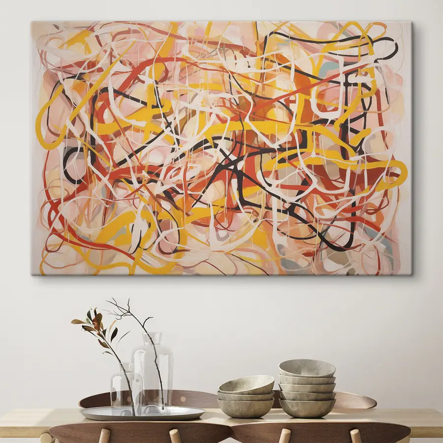 Zanurz się w wir kolorów dzięki temu żywemu obrazowi na płótnie! Wyobraź sobie, że wchodzisz do pokoju i witają Cię wiry czerwieni, żółci i żywe pociągnięcia pędzla, które wydają się tańczyć. To prawie tak, jakby obraz szeptał tajemnice, zapraszając do zatracenia się w jego chaosie. Idealny do przytulnego kącika lub gołej ściany błagającej o osobowość, ten kawałek może zmienić każdą przestrzeń z ponurej w bajeczną szybciej niż można zaparzyć filiżankę kawy. Poważnie, może nawet zainspirować do spontanicznego boogie. Kto by pomyślał, że wystrój może być tak zabawny?