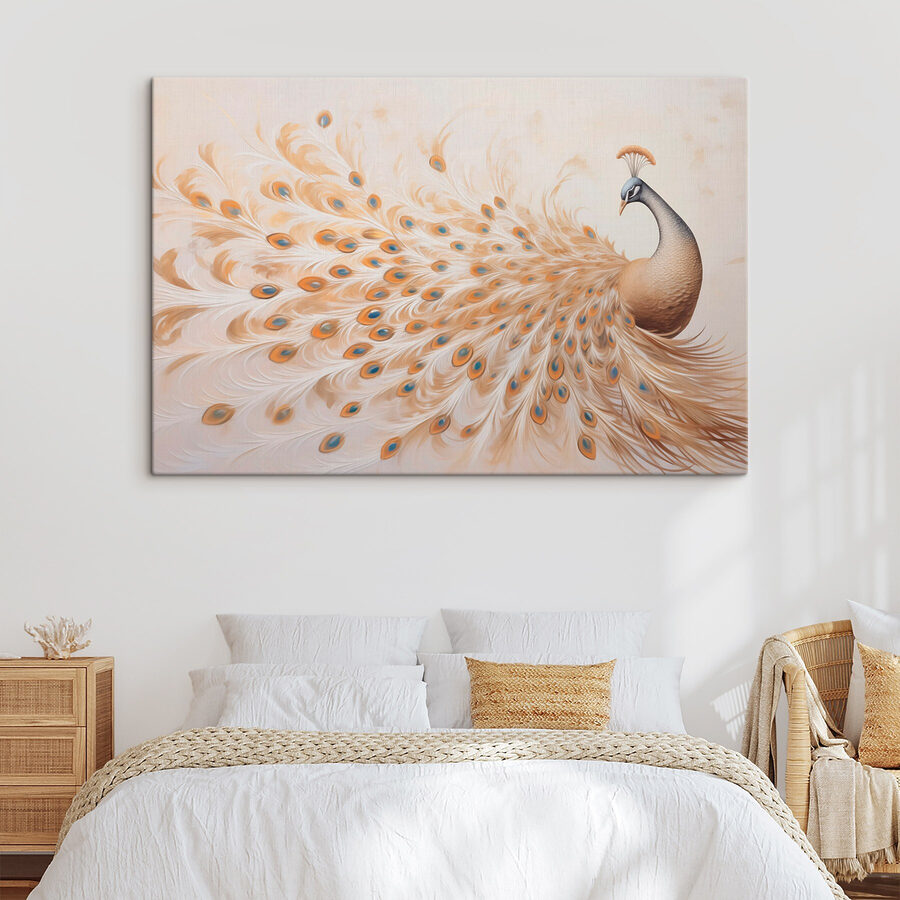 Odmień swoją przestrzeń dzięki temu wspaniałemu obrazowi na płótnie przedstawiającemu pawia, który emanuje urokiem i osobowością. Wyobraź sobie to żywe piękno rozjaśniające salon lub przytulny kącik, natychmiast przyciągające wzrok i zachęcające do rozmowy. Pióra pawia, wdzięczny pokaz kolorów, sprawiają, że czujesz się jak kawałek natury tańczący bezpośrednio na ścianie. To trochę tak, jakby mieć pierzastego przyjaciela, którego nigdy nie trzeba karmić. Idealny dla każdego, kto chce dodać odrobinę kaprysu i elegancji, ten element szepcze opowieści o egzotycznych krainach i spokojnych ogrodach, sprawiając, że każdy dzień wydaje się wyjątkowy.