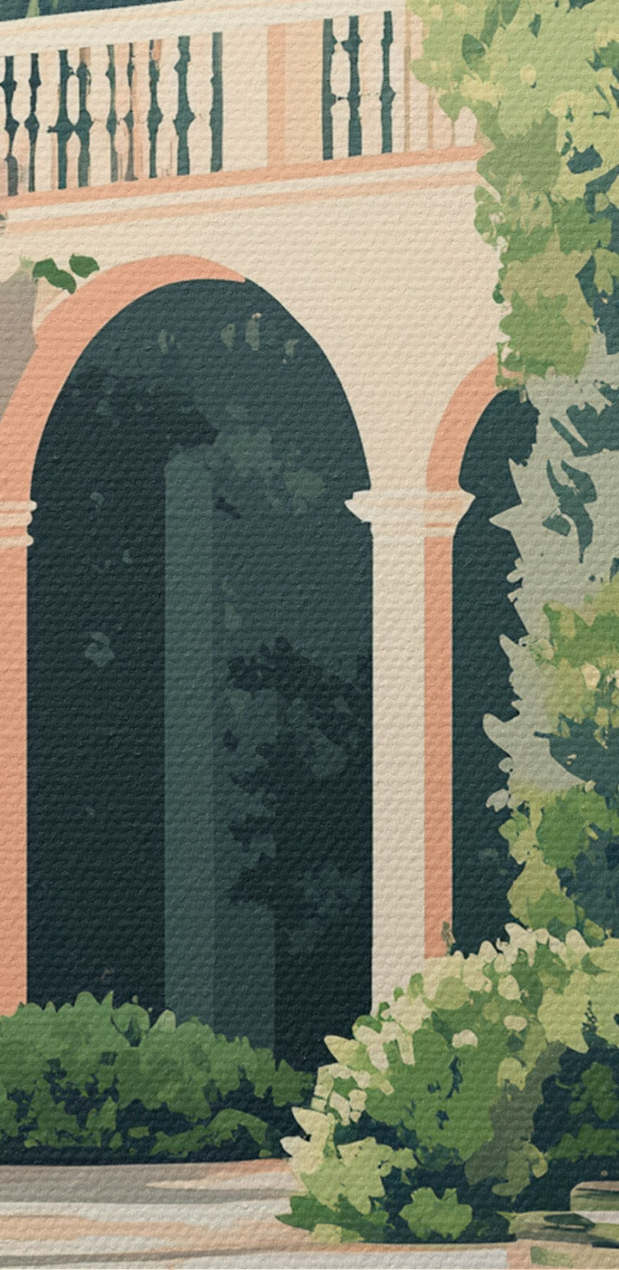 Ucieknij w wymarzoną przestrzeń dzięki obrazowi Obraz Building z balkonem i kwitnącymi roślinami. Ta grafika bez wysiłku łączy architekturę i naturę, wnosząc kawałek spokojnej elegancji prosto do domu. Wyobraź sobie popijanie kawy w otoczeniu bujnej zieleni i delikatny powiew wiatru szeleszczący liśćmi – czysta rozkosz. Idealny do przytulnego zakątka lub pustej ściany błagającej o uwagę, dodaje zachęcającej atmosfery bez większego wysiłku. Natura i wyrafinowanie łączą się tutaj, dzięki czemu łatwo rozpocząć rozmowę. Kto by tego nie chciał?