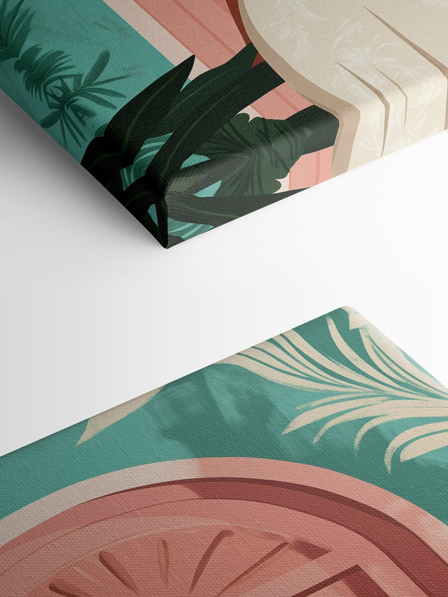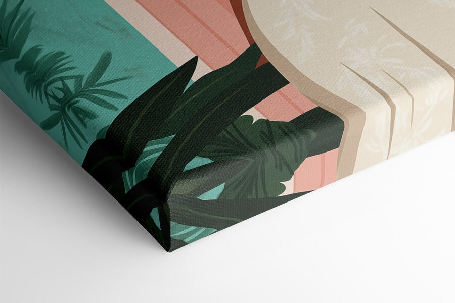 Uchwyć odrobinę magii lata dzięki temu wspaniałemu wydrukowi na płótnie. Wyobraź sobie beztroski dzień, wygrzewając się na słońcu, podczas gdy stylowa kobieta w białej sukience i eleganckim kapeluszu bez wysiłku stoi przed pastelowym tłem. To tak, jakby zapraszała Cię, byś dołączył do niej w słonecznej przygodzie. Żywe odcienie i zabawne wibracje sprawiają, że obraz ten jest idealny do rozjaśnienia każdego pomieszczenia – niezależnie od tego, czy jest to przytulny salon, czy przewiewna sypialnia. Kojarzy się z leniwymi popołudniami, zimnymi drinkami i śmiechem. Powieś go i pozwól, aby inspirował marzenia o tropikalnych ucieczkach każdego dnia!
