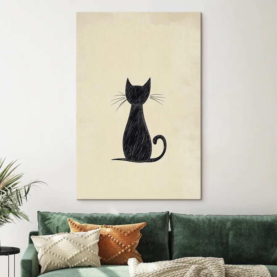 Poznaj “Obraz Black Cat with Whiskers” – kapryśny akcent, który sprawi, że każda ściana będzie zachwycać. To idealne połączenie minimalistycznego uroku i figlarnego ducha, które tylko czeka, by wtulić się w twoją przestrzeń życiową. Sylwetka tego ciekawskiego kotka sprawia, że chcesz się zastanawiać, na co patrzy – może na trzepoczącego motyla lub po prostu na świat na zewnątrz. Wyobraź go sobie nad przytulnym kącikiem do czytania, gdzie popijasz herbatę, rozmyślając o życiu, lub rozjaśniając korytarz, który potrzebuje odrobiny osobowości. To sztuka, która szepcze dobrą historię, sprawiając, że każde spojrzenie staje się nieco jaśniejsze.
