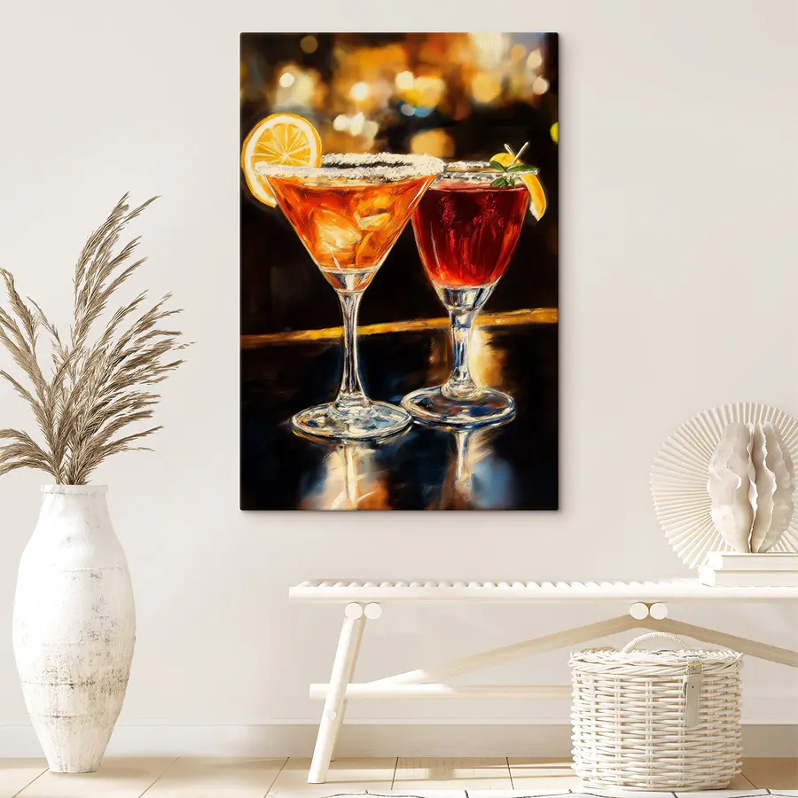 Dodaj odrobinę ciepła do każdej przestrzeni dzięki temu wspaniałemu drukowi na płótnie przedstawiającemu dwie zachęcające szklanki z napojami. Wyobraź sobie, że rozjaśnia przytulny kącik w kuchni lub w salonie, natychmiast pobudzając do rozmów. Żywe odcienie zachęcają do poświęcenia chwili, a może nawet delektowania się drinkiem. To jak mini święto na ścianie, przypominające wszystkim o relaksie i cieszeniu się małymi przyjemnościami życia. Idealne do chilloutów lub wyrafinowanych spotkań, to dzieło sztuki z pewnością przyciągnie wzrok i wywoła kilka uśmiechów. Wiwat dobre wibracje i zachwycający wystrój!