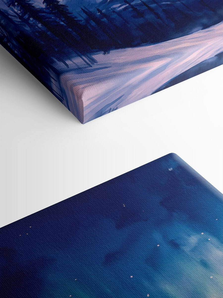 Wyobraź to sobie – jest przytulny wieczór, może masz filiżankę chai w ręku i nagle przenosisz się do magicznego górskiego krajobrazu pod tańczącą zorzą polarną. Ten wydruk na płótnie właśnie to robi. Żywe błękity i zielenie wirują nad ośnieżonymi szczytami, a drzewa stoją wysoko jak cisi strażnicy. To idealne rozwiązanie dla każdego, kto marzy o ucieczce na łono natury, nawet jeśli tylko z wygodnej kanapy. Wyobraź sobie, jak ożywi każdą ścianę, pobudzając do rozmów lub po prostu zapewniając spokojne tło dla tych przemyślanych chwil. Piękno natury zamknięte specjalnie dla Ciebie.