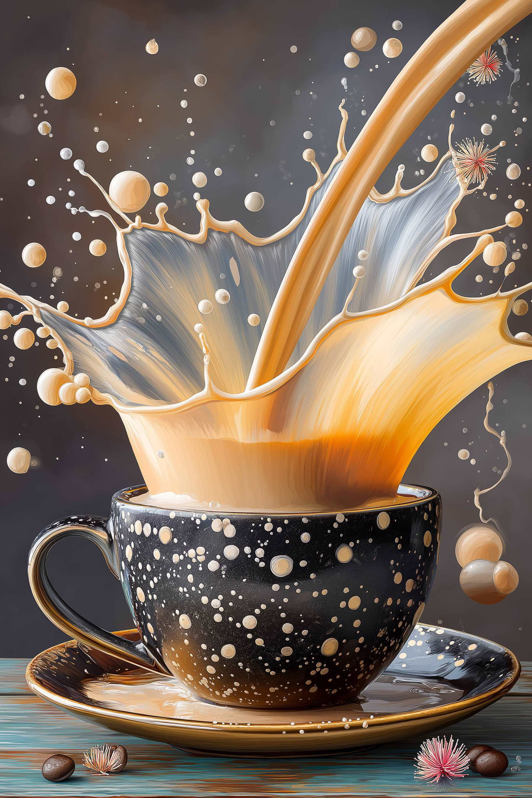 Ciesz się żywą chwilą dzięki temu drukowi na płótnie, który oddaje radość picia w akcji. Wyobraź sobie to rozkoszne uczucie zaskoczenia, gdy perfekcyjne nalanie sprawia, że krople lecą, a każda z nich jest pełna energii. Ta grafika nie jest przeznaczona tylko do kuchni; wnosi zabawny akcent do każdej przestrzeni. To jak mały wybuch szczęścia na ścianie, przypominający o przytulnych przerwach na kawę lub nocnych sesjach herbacianych. Goście zrobią podwójne spojrzenie, a kto wie, może nawet zainspiruje to zaimprowizowaną imprezę taneczną w kuchni. Idealny dla tych, którzy cenią sobie zabawę, smak i odrobinę kaprysu w swoim wystroju!