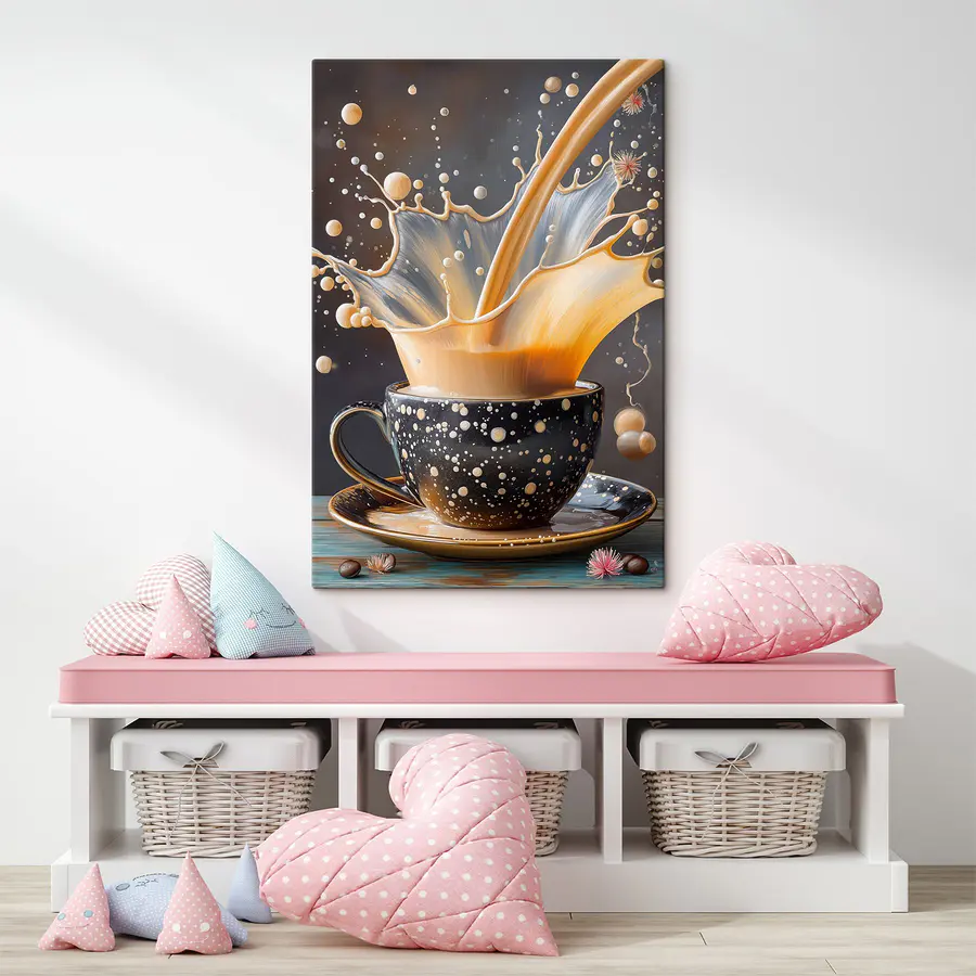 Ciesz się żywą chwilą dzięki temu drukowi na płótnie, który oddaje radość picia w akcji. Wyobraź sobie to rozkoszne uczucie zaskoczenia, gdy perfekcyjne nalanie sprawia, że krople lecą, a każda z nich jest pełna energii. Ta grafika nie jest przeznaczona tylko do kuchni; wnosi zabawny akcent do każdej przestrzeni. To jak mały wybuch szczęścia na ścianie, przypominający o przytulnych przerwach na kawę lub nocnych sesjach herbacianych. Goście zrobią podwójne spojrzenie, a kto wie, może nawet zainspiruje to zaimprowizowaną imprezę taneczną w kuchni. Idealny dla tych, którzy cenią sobie zabawę, smak i odrobinę kaprysu w swoim wystroju!