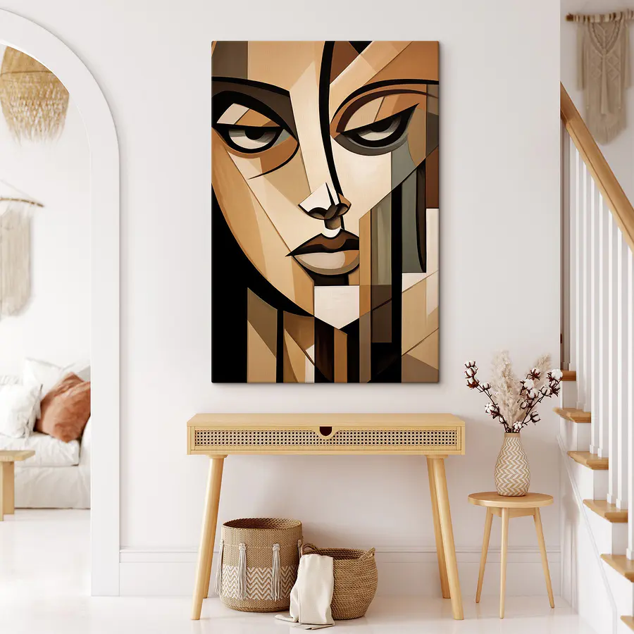 Ten urzekający wydruk na płótnie przedstawiający kobiecą twarz wniesie odrobinę intrygi do każdej przestrzeni. Dzięki abstrakcyjnym liniom i ciepłym, ziemistym odcieniom, obraz ten zachęca do rozmowy nawet bez wypowiadania słów. Wyobraź sobie, jak może odmienić Twój salon – przyjaciele zatrzymują się, by podziwiać, a stare historie nagle odżywają. To nie tylko dzieło sztuki; to nastrój. Odważne pociągnięcia i przemyślana ekspresja zapraszają do środka, zachęcając do marzeń i refleksji. Powieś go tam, gdzie światło tańczy na jego powierzchni i obserwuj, jak ożywa – idealny na przytulne wieczory z dobrą książką lub filiżanką kawy w dłoni. Spraw, aby Twoje ściany były trochę bardziej Twoje.