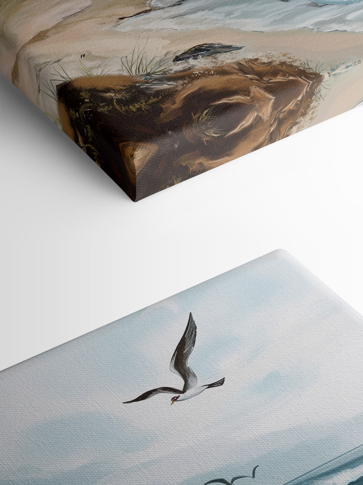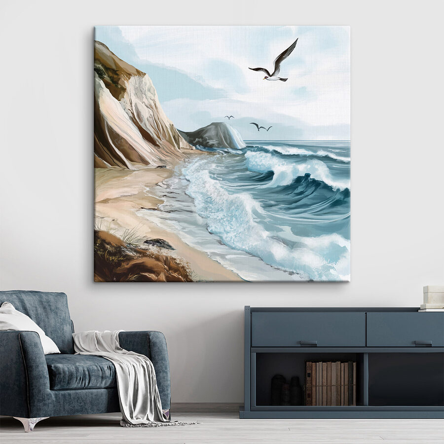 Przekształć każdą ścianę w kawałek raju dzięki temu uroczemu obrazowi na płótnie przedstawiającemu mewę szybującą z gracją nad rozświetloną słońcem plażą. Wyobraź sobie uspokajającą bryzę oceanu i delikatny dźwięk fal rozbijających się o brzeg – ta grafika pięknie to oddaje. Daje poczucie wolności i spokoju, które sprawia, że chce się zdjąć buty i poczuć piasek między palcami. Idealny do przytulnego salonu lub wyluzowanego gabinetu, jest jak zaproszenie odrobiny plażowej ucieczki do codziennego życia. Kto nie uśmiechnąłby się widząc ten żywy element każdego dnia?
