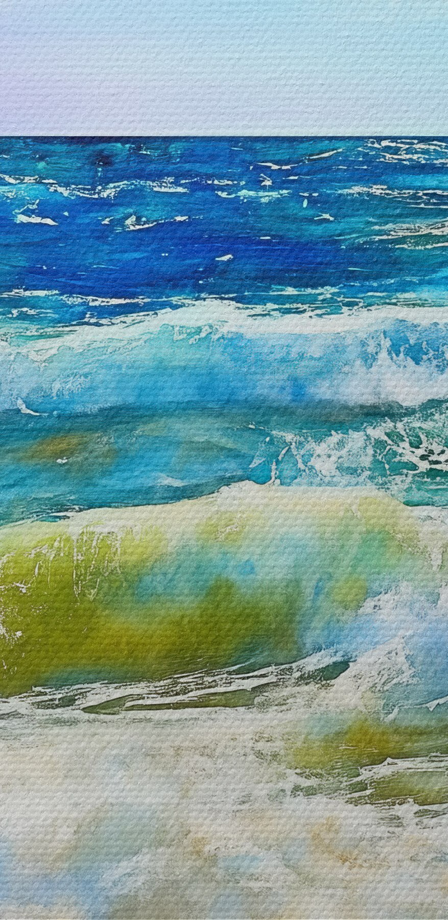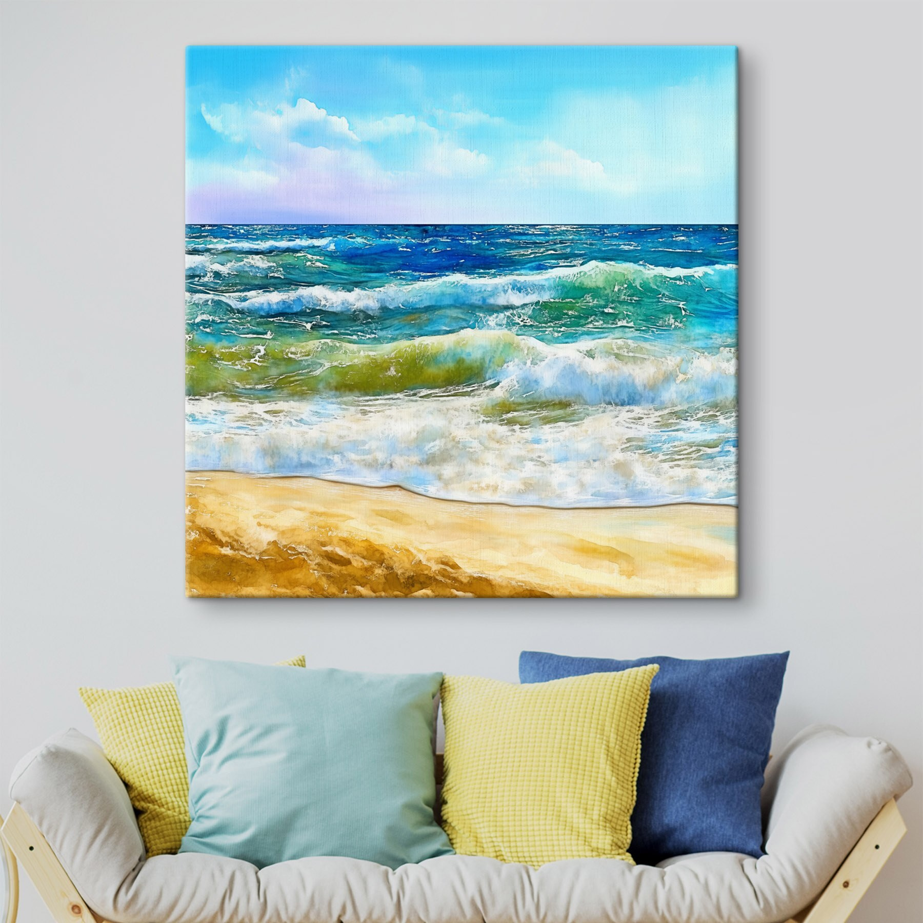 Przenieś plażę do swojego domu dzięki tej uroczej akwareli przedstawiającej fale rozbijające się o brzeg. Wyobraź sobie szum fal i uczucie piasku między palcami za każdym razem, gdy na niego spojrzysz. Żywe kolory tańczą razem jak letnia bryza, przywołując wspomnienia słonecznych popołudni spędzonych na słuchaniu oceanu. Idealny do każdego pomieszczenia, ten kawałek dodaje odrobinę spokoju i ciepła. To jak podarowanie ścianie wakacji – kto by tego nie chciał? Niech twoja przestrzeń odzwierciedla te beztroskie plażowe wibracje; sprawi, że każdy dzień poczuje się trochę bardziej jak w raju.