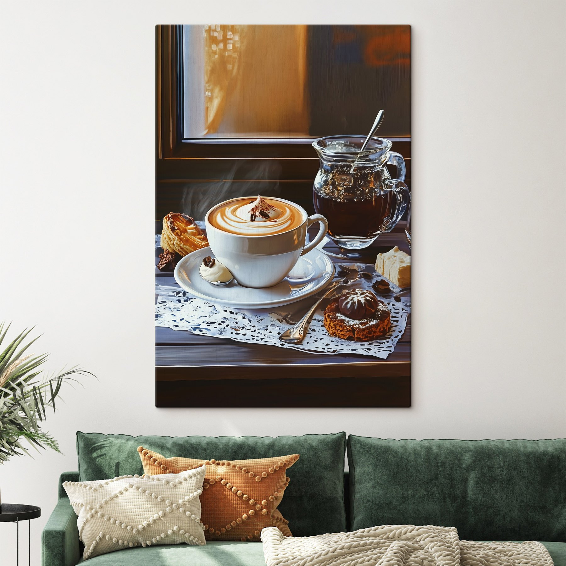 Wyobraź sobie tę uroczą scenę – przytulną filiżankę kawy i elegancki dzbanek herbaty, idealne na leniwe poranki lub spokojne popołudnia. Ciepłe, zachęcające kolory przynoszą poczucie komfortu, jak stary przyjaciel dzielący się historiami przy ciastkach. Wyobraź to sobie na ścianie w kuchni, wywołując radość za każdym razem, gdy ktoś przechodzi obok. To rodzaj sztuki, która szepcze “zrelaksuj się”, gdy popijasz swój ulubiony napar. Niezależnie od tego, czy chodzi o kuchnię, jadalnię, czy nawet przytulny kącik, dodaje on dodatkowej szczypty ciepła i uroku. Bo, bądźmy szczerzy, kto nie kocha chwili relaksu przy dobrej kawie?