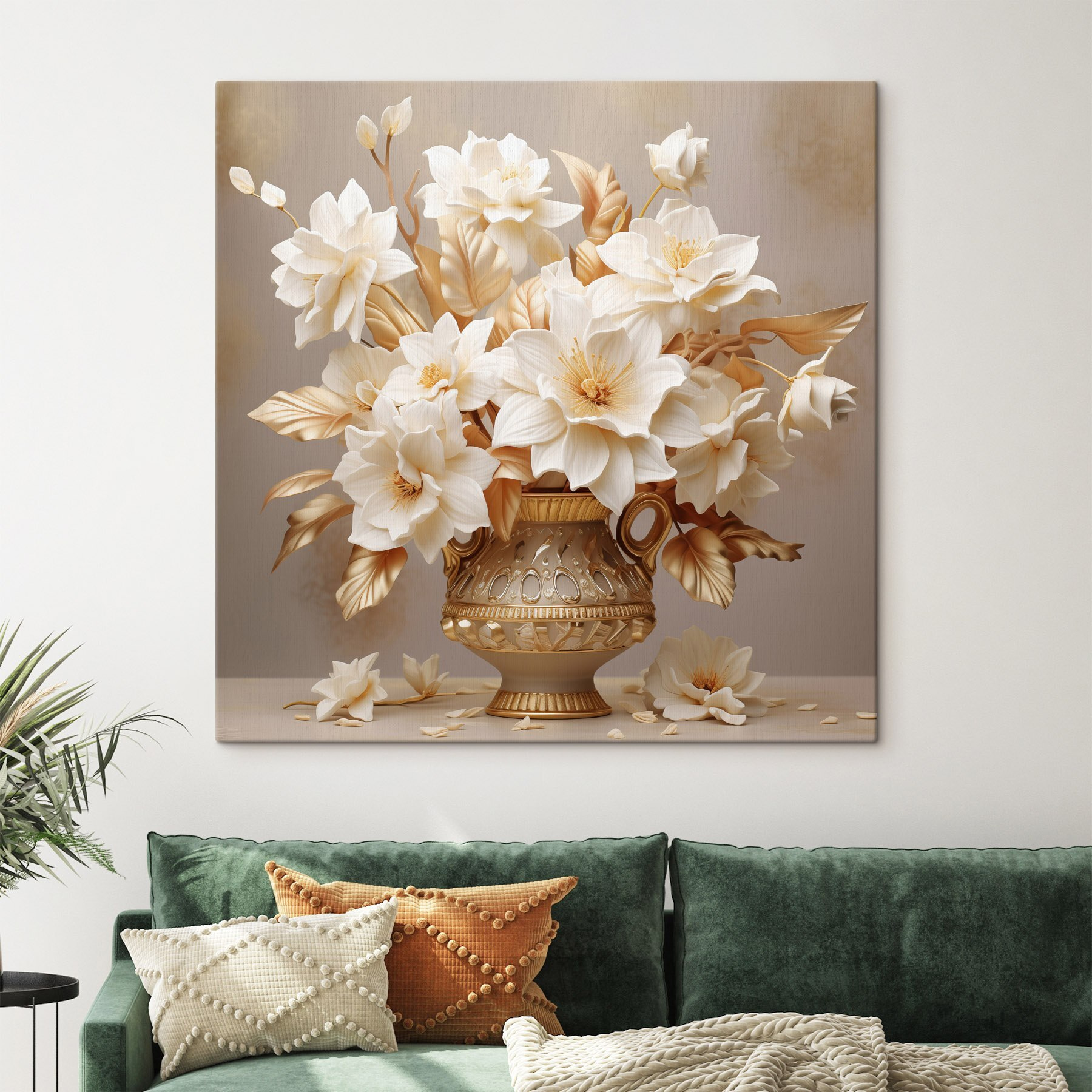 Rozjaśnij każde pomieszczenie dzięki temu wspaniałemu drukowi na płótnie, przedstawiającemu piękny wazon pełen białych kwiatów. To jak powiew świeżego powietrza na ścianach, zapraszający odrobinę natury do wnętrza bez konieczności podlewania! Wyobraź sobie przytulne poranki ze światłem słonecznym wpadającym przez okno, delikatną elegancją tych kwiatów, które wprowadzają pogodny nastrój i sprawiają, że wszystko wydaje się nieco jaśniejsze. Idealny do salonu lub pustej ściany w korytarzu, ten element może wywołać radość, a może nawet kilka komplementów. To sztuka, która nie tylko wisi w pobliżu, ale naprawdę ożywia miejsce.