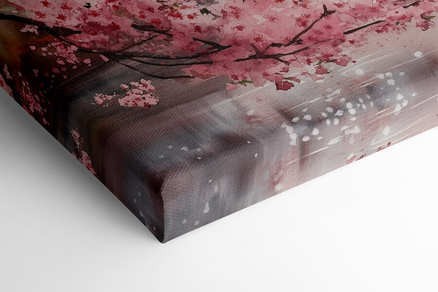 Uchwyć odrobinę spokoju dzięki tej wspaniałej akwareli przedstawiającej uroczy budynek położony obok wdzięcznego drzewa kwitnącej wiśni. To jak małe okno do spokojnego japońskiego ogrodu w Twoim domu. Wyobraź sobie delikatne różowe kwiaty odbijające się w wodzie, szepczące opowieści o wiośnie. Ten element jest idealny do rozbudzenia radości i spokoju w każdym zakątku pokoju. Niezależnie od tego, czy znajduje się nad przytulną kanapą, czy zdobi cichy kącik do czytania, wywołuje uczucie zachwytu, sprawiając, że każde spojrzenie staje się mini ucieczką. W końcu komu nie przydałaby się chwila spokoju w ciągu dnia?